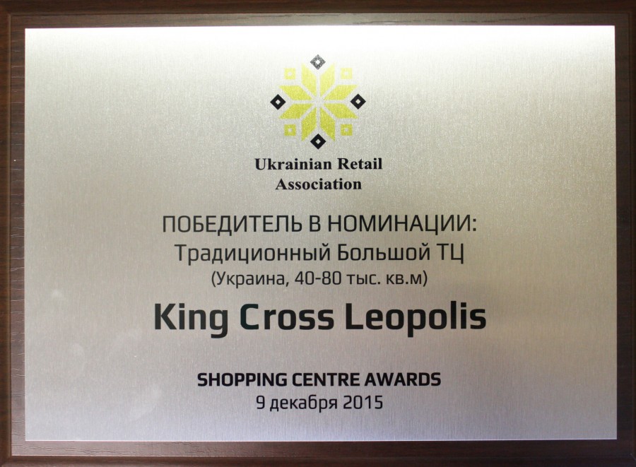 ТРЦ King Cross Leopolis отримав нагороду у номінації "Традиційний великий ТЦ (Україна 40-80 тис.кв.м.).