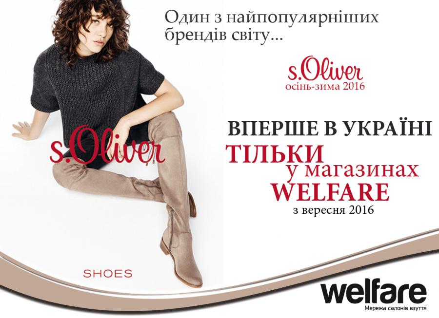 Взуття s.Oliver для сміливих людей, які звикли перетворювати фантазії у реальність. Мережа магазинів Welfare перетворила в реальність можливість купувати бренд s.Oliver в Україні. З вересня, тільки в мережі магазинів Welfare, шукайте на полицях нову жіночу колекцію осінь-зима 2016-2017 і пам'ятайте, реальна мода для реальних людей!