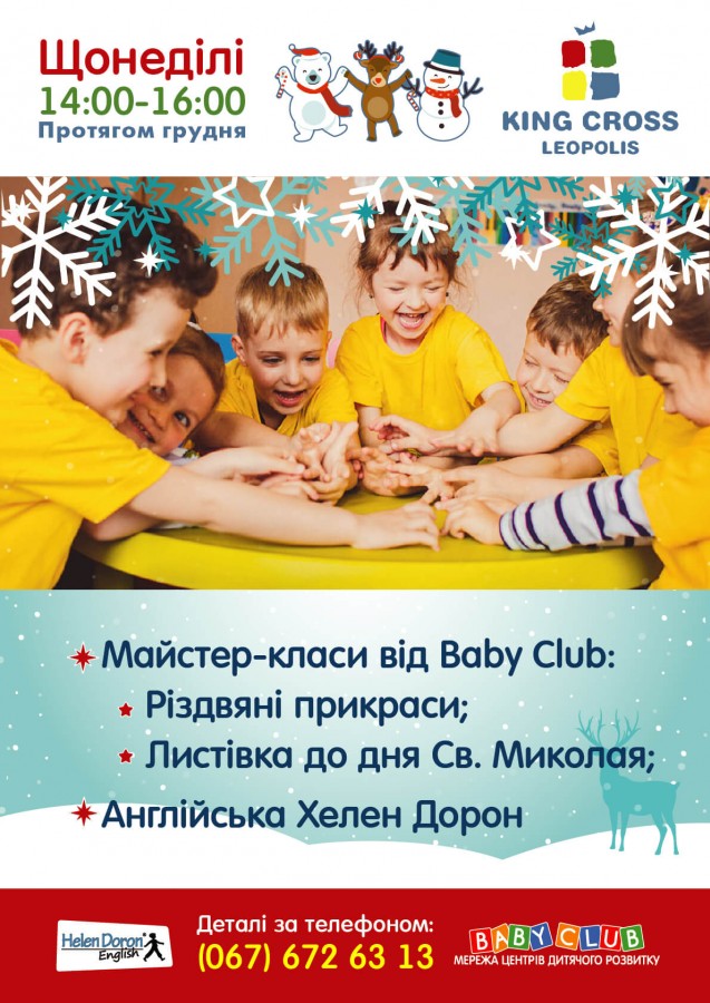 Кожної неділі грудня чекаємо вас і діток на майстер класи від Baby Club