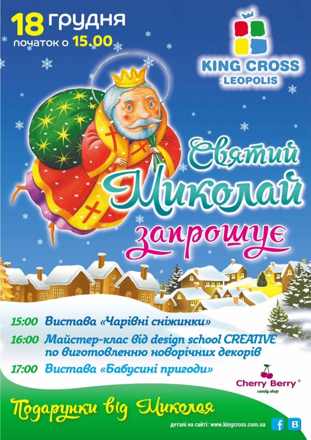 Святий Миколай обіцяє подарунки всім чемним діткам, сюрпризи та особливу новорічну виставу для маленьких глядачів.