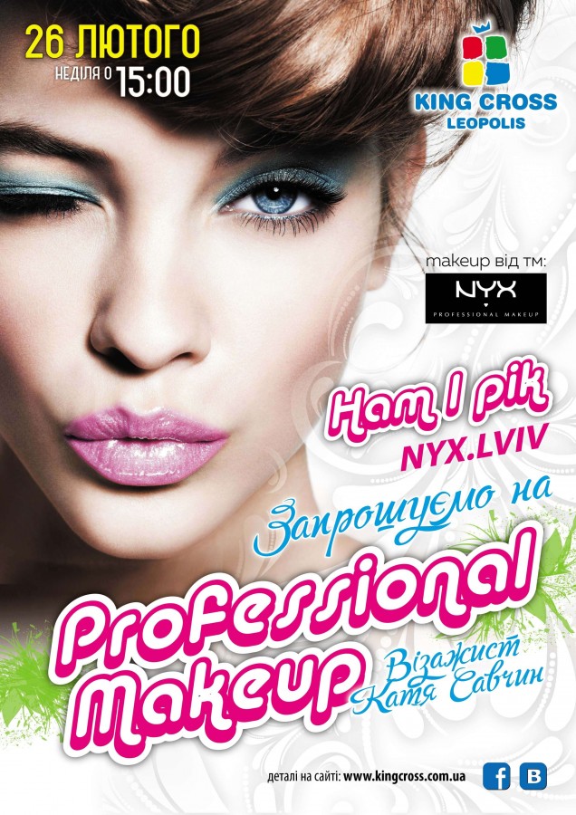 З нагоди святкування 1 річниці NYX у ТРЦ King Cross Leopolis 26 лютого 0 15.00 запрошуємо на професійний майстер клас від візажиста Каті Савчин.