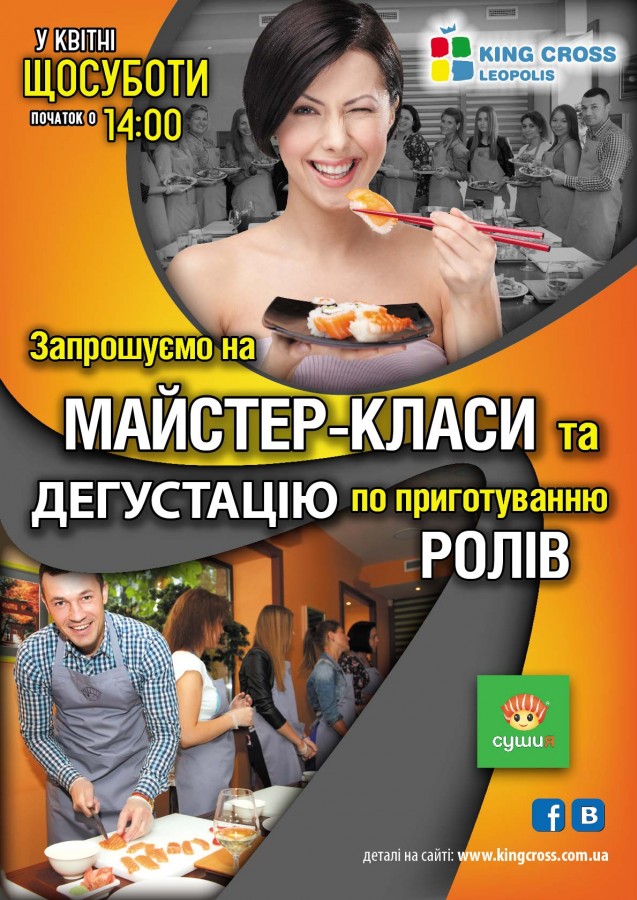 Не уявляєте свого життя без суші? Щосуботи приходьте у King Cross Leopolis та навчайтесь готувати найсмачніші роли!