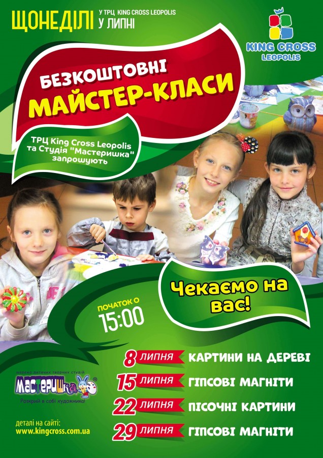 Щонеділі, в липні, студія "Мастеришка" та ТРЦ King Cross Leopolis проводять серію майстер-класів.