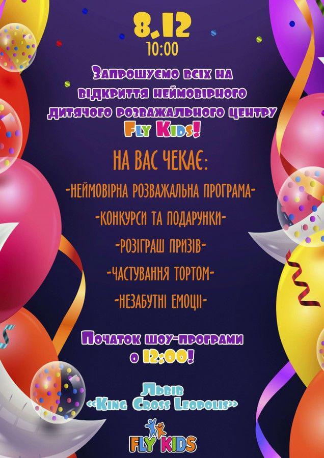 Запрошуємо на відкриття дитячого розважального центру!