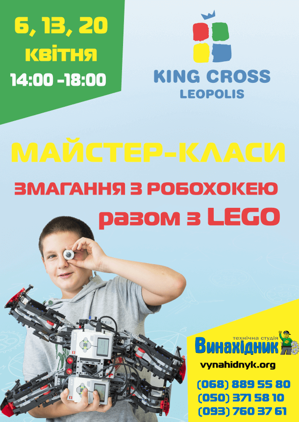 Юні винахідниці та винахідники! Запрошуємо на квітневі майстер-класи LEGO від технічної студії "Винахідник". Щосуботи ми будемо влаштовувати неймовірно цікаві змагання з робохокею разом з LEGO!