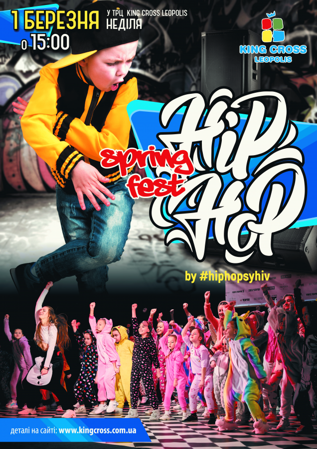 Запрошуємо на Hip Hop Spring Fest у ТРЦ King Cross Leopolis! Зустрічайте весну драйвово з вихованцями танцювальної студії Хіп-Хоп Сихів. Вони запалять танцпол та покажуть найцікавіші прийоми. Завітайте!Початок о 15:00!
