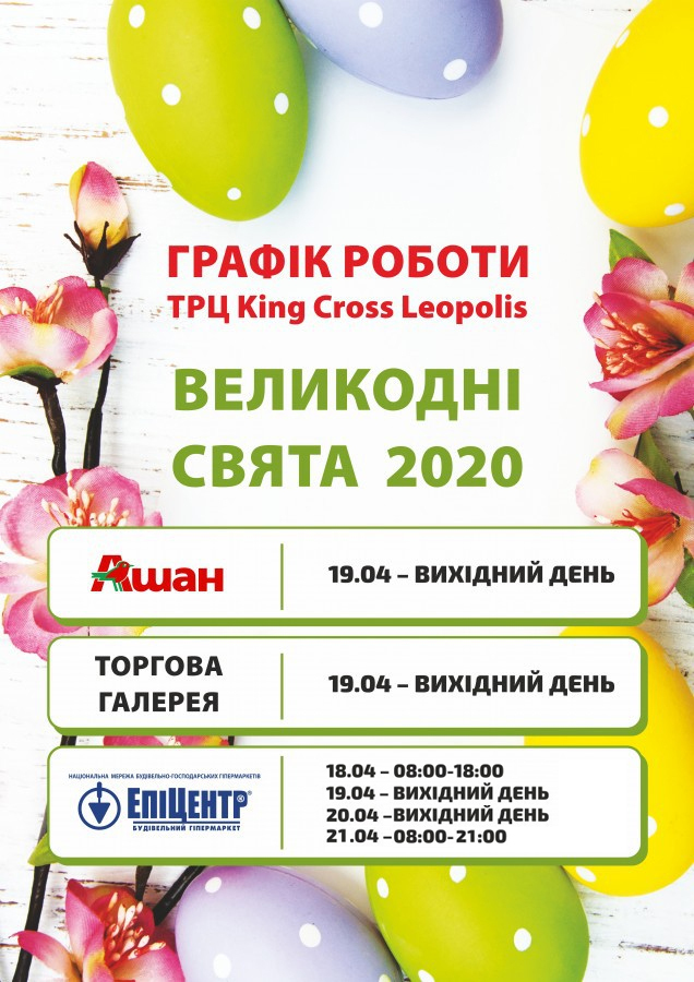 Графік роботи ТРЦ King Cross Leopolis під час Великодніх свят!