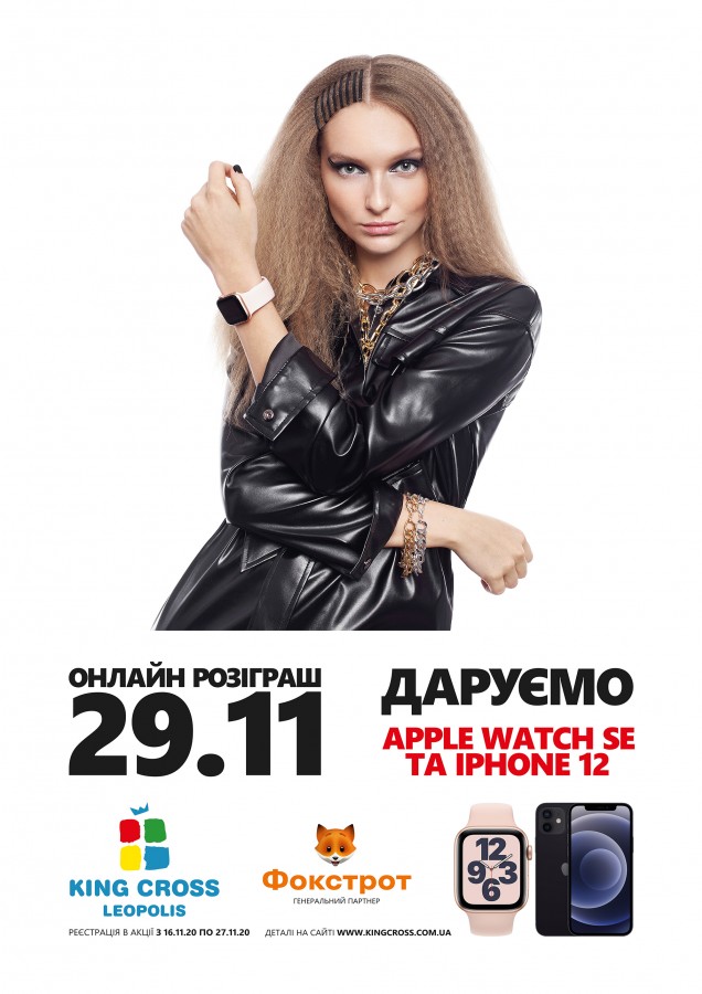 29.11 о 15:00 ми проведемо розіграш iPhone12 та Apple Watch SE в прямому ефірі – на сторінці ТРЦ King Cross Leopolis у Facebook!
