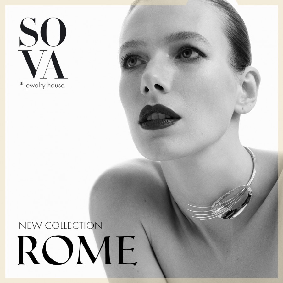 Прикраси з нової колекції - це інтерпретація ліній і форм античної архітектури та жвавого духу сучасного Риму. Масштаб, динаміка, ясність, які ювеліри SOVA втілили у жовтому та білому золоті й діамантах. В колекції 12 масивних, але лаконічних предметів: кольє, перснів, браслетів, які вражають величчю і в одночас невимушеністю. Вони надихають святкувати не лише новорічну ніч, а й кожен день року, і найголовніше – себе в них.
