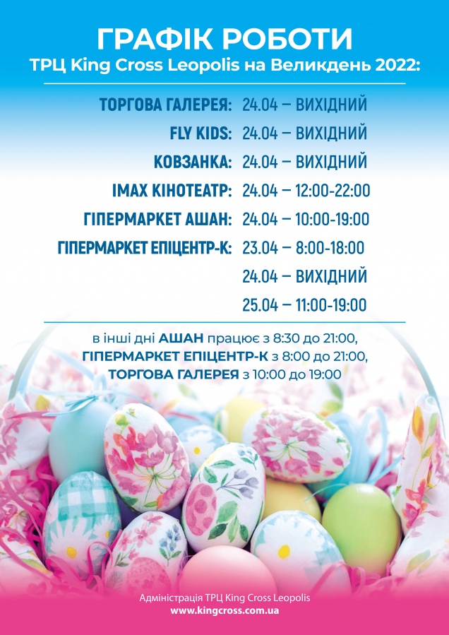 Графік роботи ТРЦ King Cross Leopolis на Великдень!