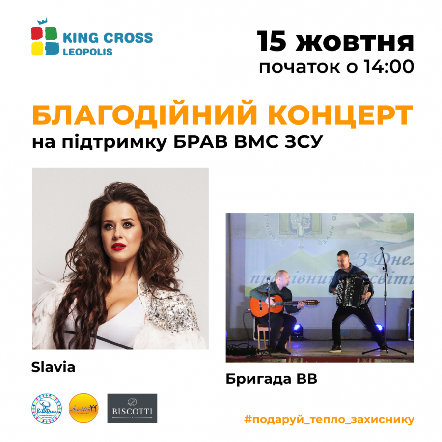 Друзі, у День захисників і захисниць України ділимося важливим анонсом! 15 жовтня у ТРЦ King Cross Leopolis відбудеться концерт, на якому збиратимемо кошти для наших Збройних Сил!