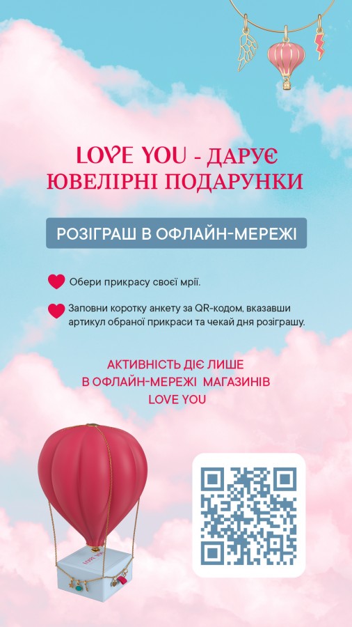 *The price of the selected jewelry must not exceed UAH 20,000, taking into account the current discount in the LOVE YOU chain of stores.