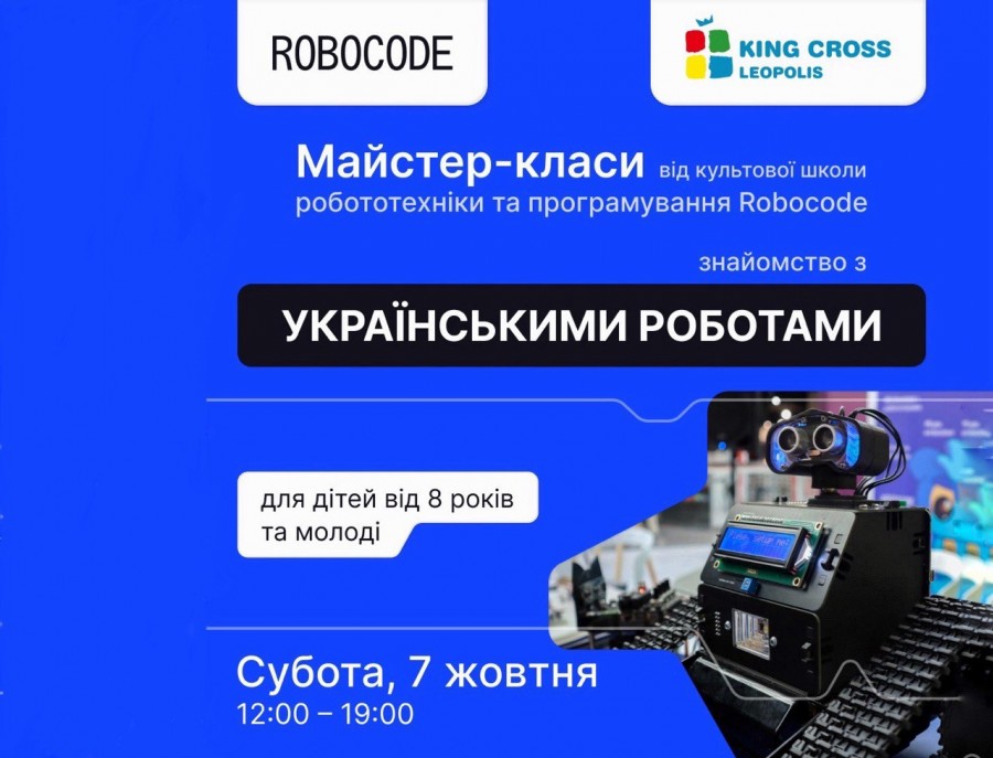 У суботу, 7 жовтня, культова школа програмування та робототехніки Robocode проведе майстер-класи “Знайомство з українськими роботами”. Під час них ви зможете познайомитись з українською історією розвитку робототехніки та навіть спробувати себе у ролі справжнього інженера!