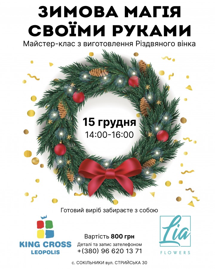 15 грудня о 14:00 розпочнеться майстер-клас із виготовлення Різдвяного вінка. Це чудова можливість не лише проявити творчість, а й додати унікальності вашому домашньому оздобленню!