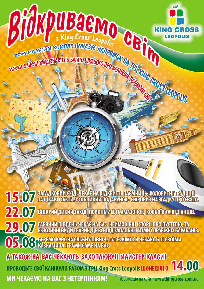 Влітку у ТРЦ King Cross Leopolis цікаво і батькам, і малюкам! Відтепер, в той час як Ви здійснюєте покупки та знайомитесь з модними новинками, Ваші діти не сидять вдома, а проводять час у казковій атмосфері пригод, забав, майстер-класів та приємних подарунків. Протягом липня – кожної неділі з 13.00 до 18.00 – цікаві атракції для дітей у Торгово-Розважальному Центрі King Cross Leopolis!