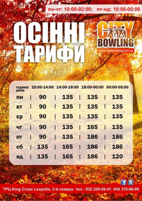 Осінні тарифи у City Bowling