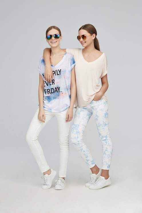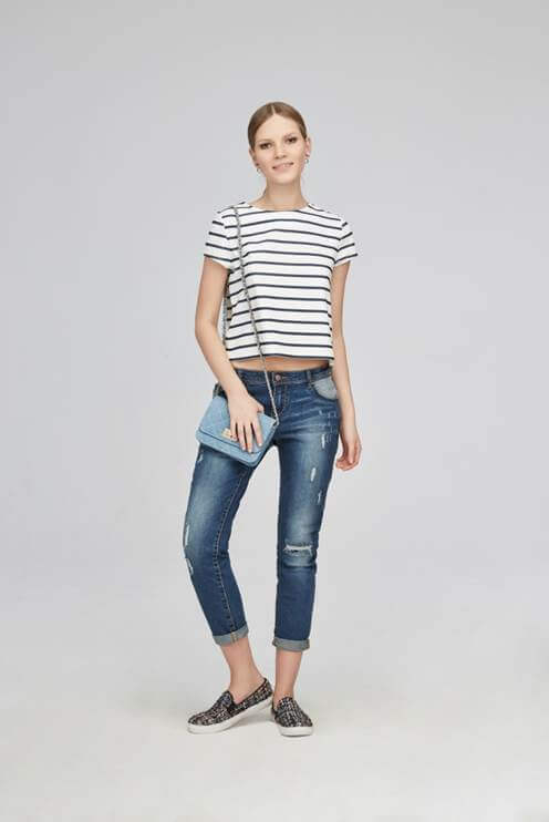 Краща пара до улюблених джинсів - футболка, топ або светшот. Дизайнер випустила спеціальну капсулу одягу, яка ідеально поєднується з денімом. Моделі з навмисно зістареного джерсі виглядають так, ніби вигоріли на яскравому сонці узбережжя, бавовняні футболки з написами - справжній хіт будь-якого пляжу, а кроп-топи - дівочий must have та прекрасна можливість продемонструвати тонку талію і відмінний прес.