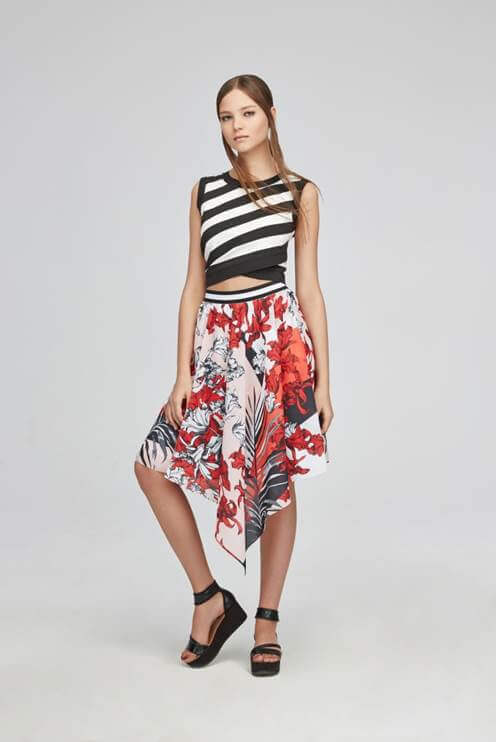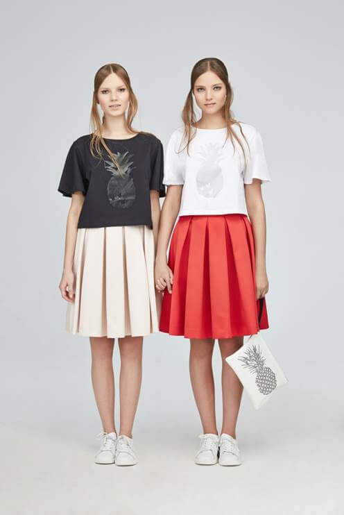Головні речі майбутнього сезону в одній капсулі: приталені сукні в яскраву смужку, моделі спортивного стилю з рослинними малюнками, літні пальто, скроєні на кшталт японських кімоно, джемпери із зображеннями фруктів та квітів, пишні спідниці та кроп-топи. Візитівка колекції - тропічні принти. Всі предмети капсули ідеально поєднуються між собою за кольором та фасоном - створити модний образ тепер ще легше!