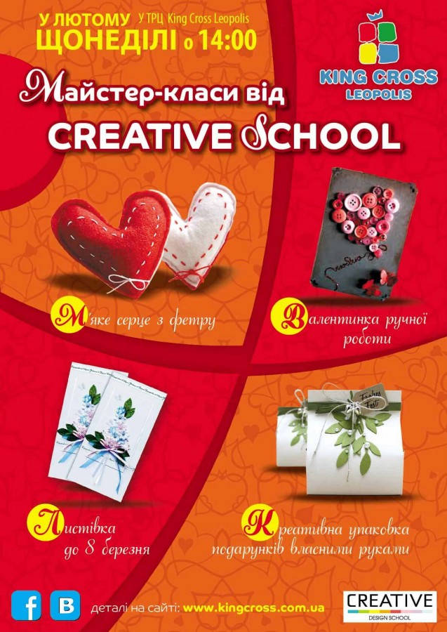 Щонеділі у лютому, у ТРЦ King Cross Leopolis - майстер-класи від Creative School