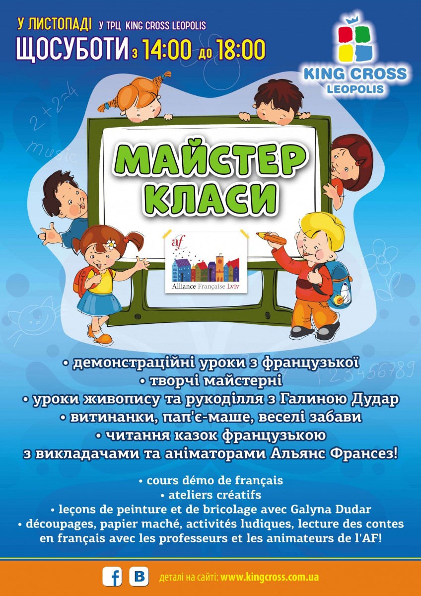 Щосуботи у листопаді, з 14:00 до 18:00, пізнавальні майстер-класи від "Французького Альянсу"