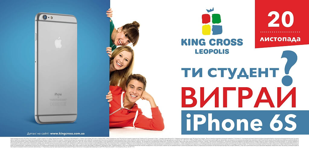 Приходь в ТРЦ King Cross Leopolis 20 листопада, пред'яви студентський та отримай можливість виграти iPhone 6s та інші подарунки!
