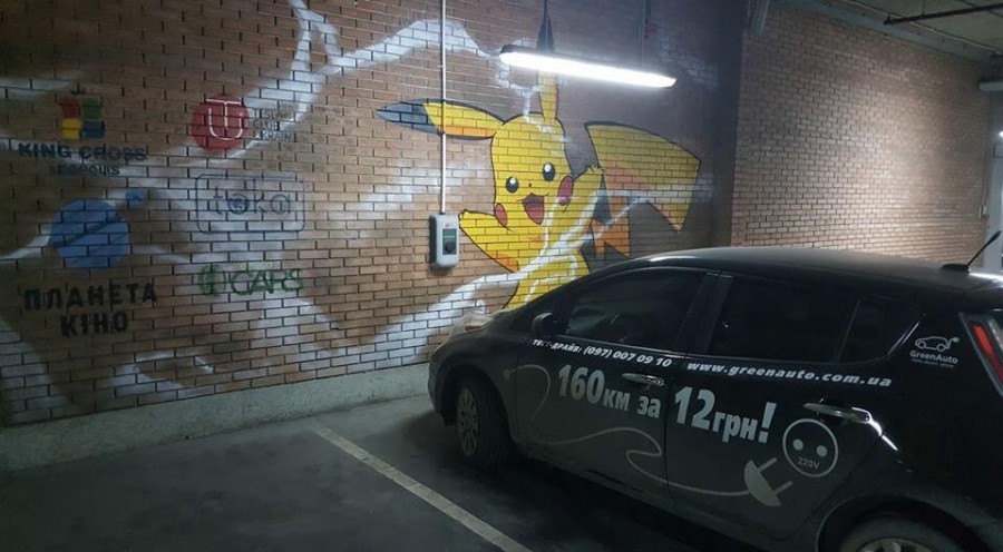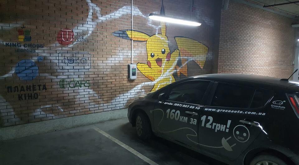 Зарядка знаходиться на підземному паркінгу у зеленій зоні.