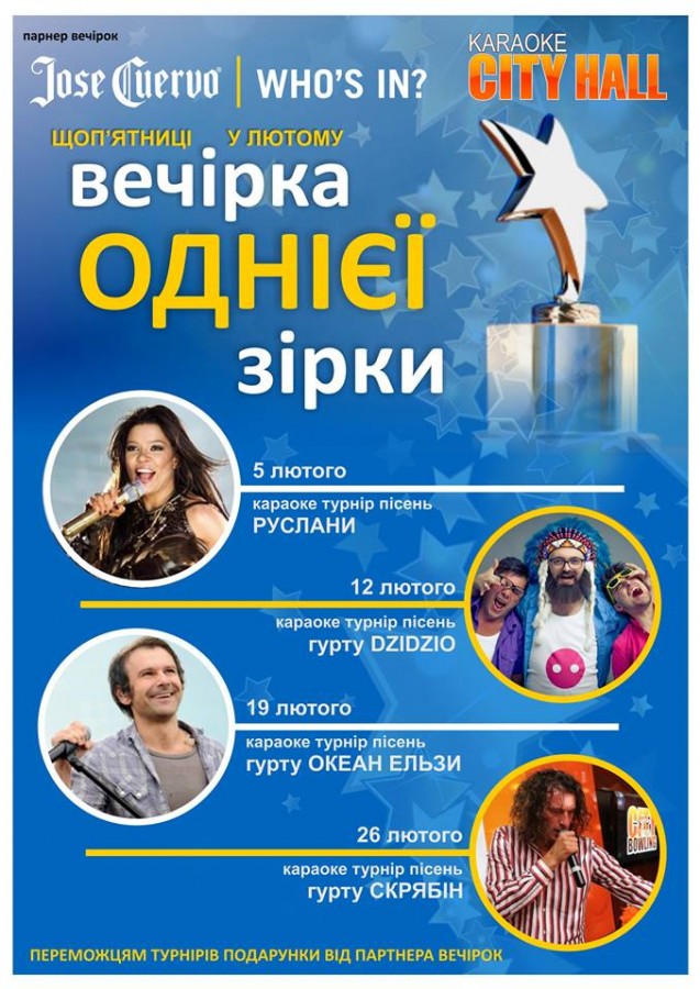 Щоп'ятниці у лютому у Karaoke City Hall вечірка однієї зірки.
