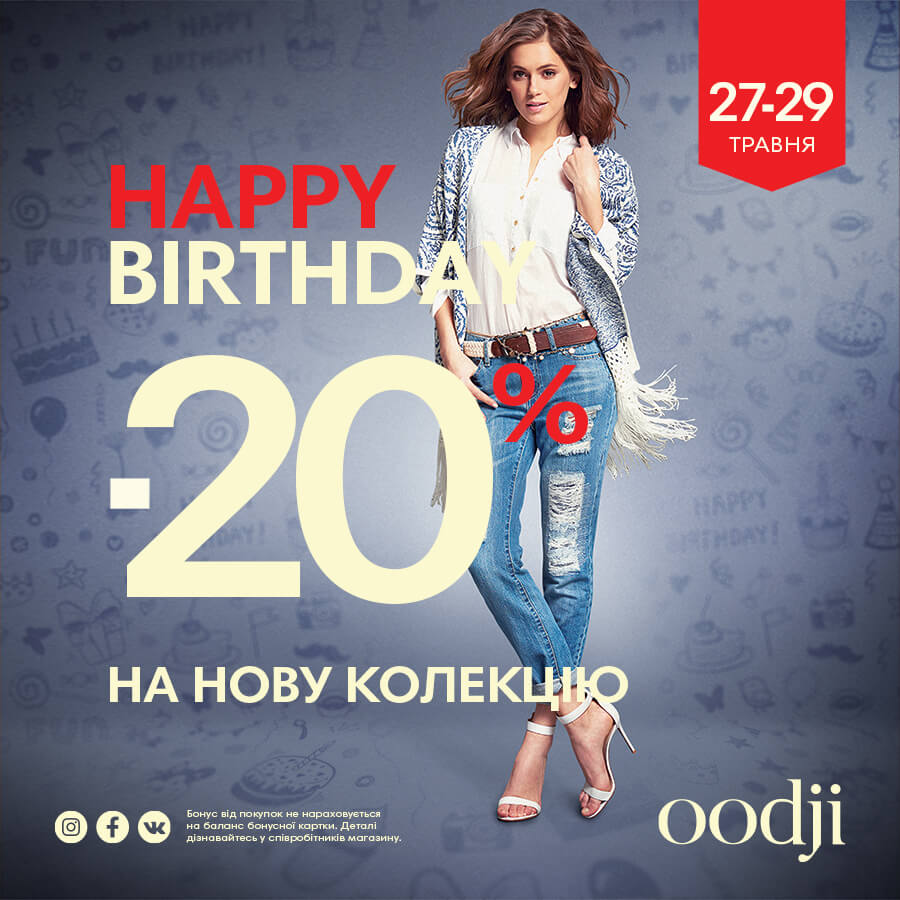 Тільки з 27 по 29 травня, на честь свята, oodji дарує знижку 20% на ВСЮ нову колекцію!