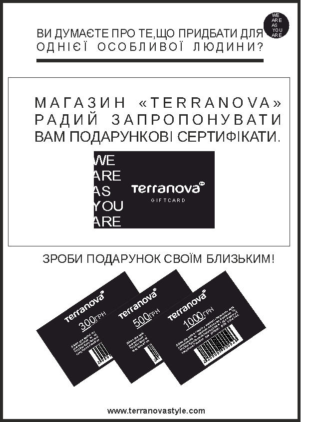 Ви думаєте про те, що придбати для особливої людини? Ми пропонуємо вам подарункові сертифікати на суми від 300, 500, 1000 грн