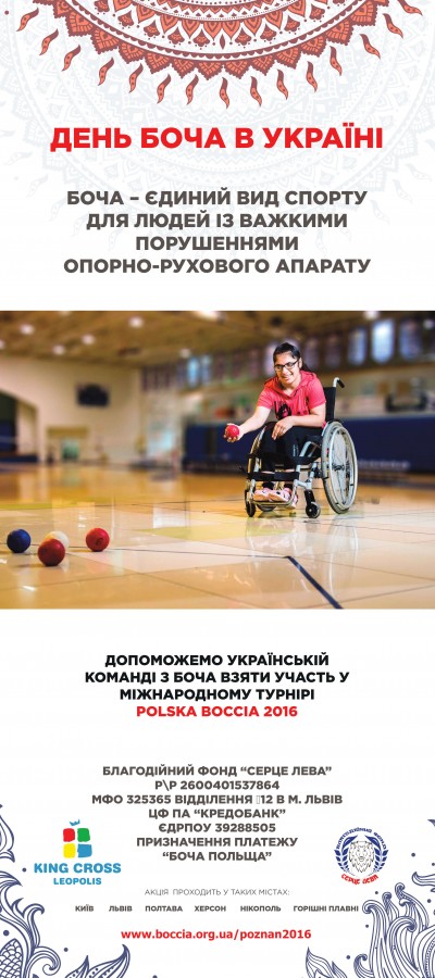 - Збір коштів для фінансової підтримки української команди з боча для участі у міжнародному турнірі Polska Boccia 2016 (детальна інформація про турнір за посиланням: http://www.boccia.org.ua/poznan2016