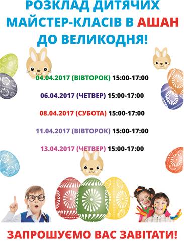 Запрошуємо вас на майстер-класи для наймолодших в гіпермаркеті АШАН!