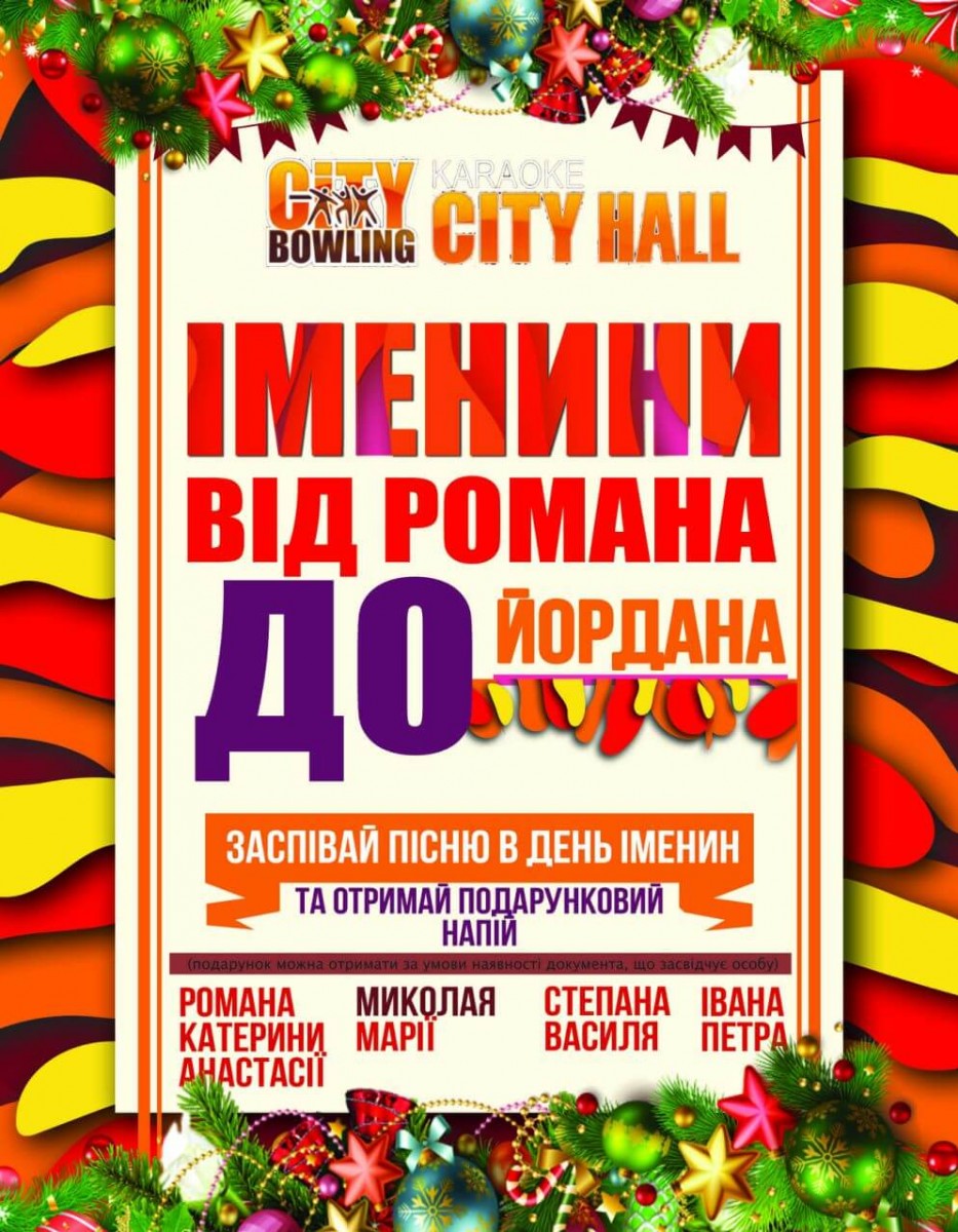 В Karaoke City Hall - іменини від Романа до Йордана. В день іменин заспівай пісню та отримай святковий напій!