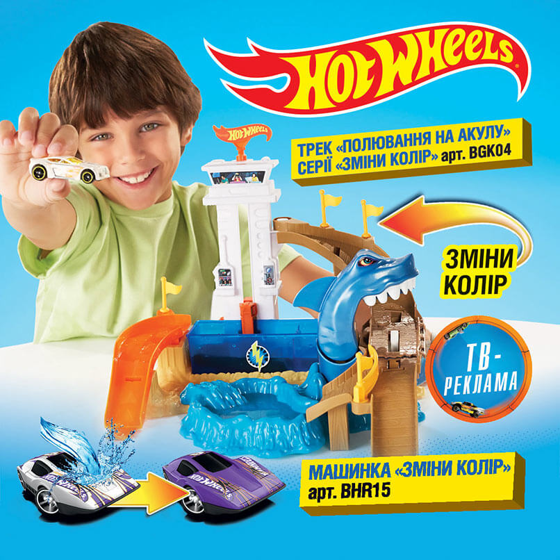 Втікай від ненажерливої акули на захоплюючому екшн-треку серії «Зміни колір» (арт.BGK04) від Hot Wheels!