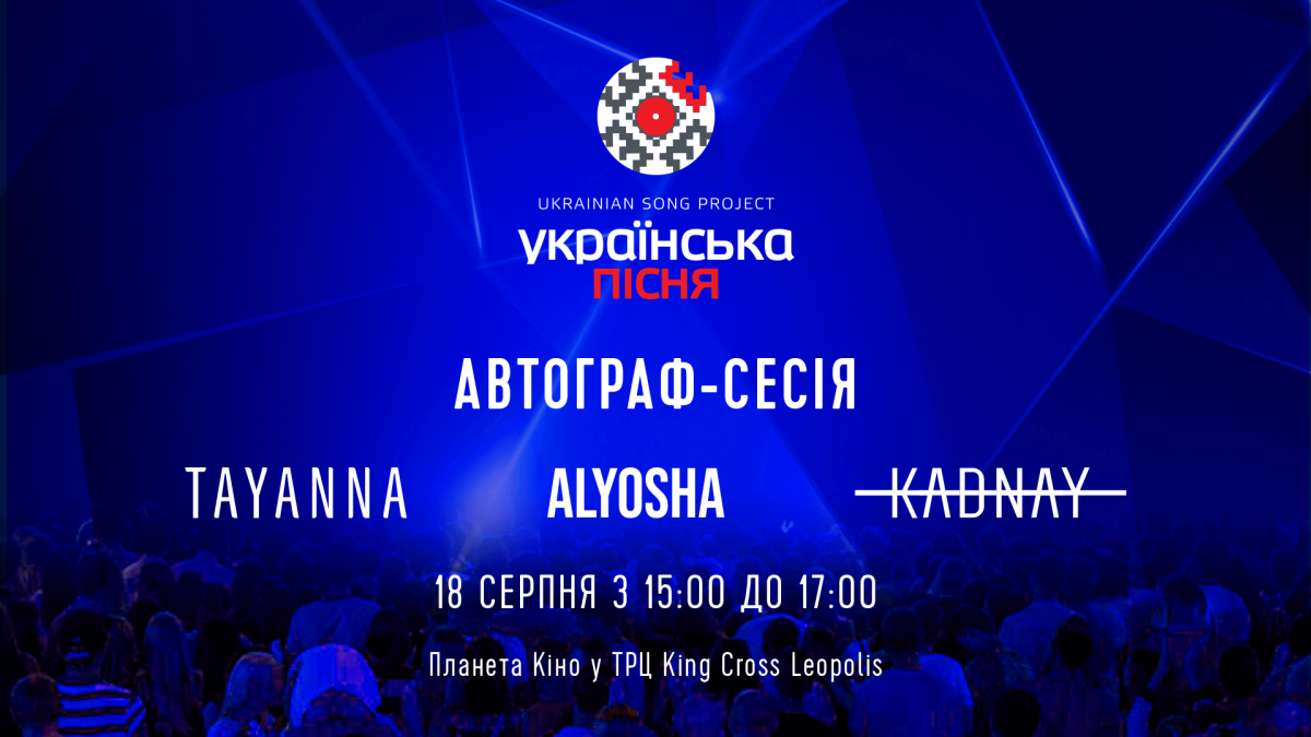 Запрошуємо на зустріч з хедлайнерами фестивалю “Українська пісня” 2018: TAYANNA, Alyosha та гуртом KADNAY! Кожен охочий зможе поспілкуватися та отримати автограф від свого кумира.