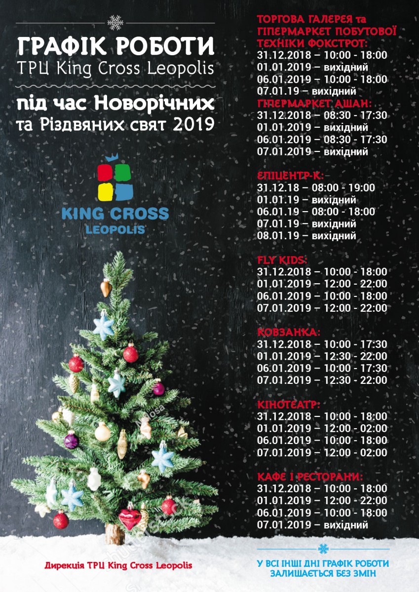 Графік роботи ТРЦ King Cross Leopolis під час Новорічних та Різдвяних свят!
