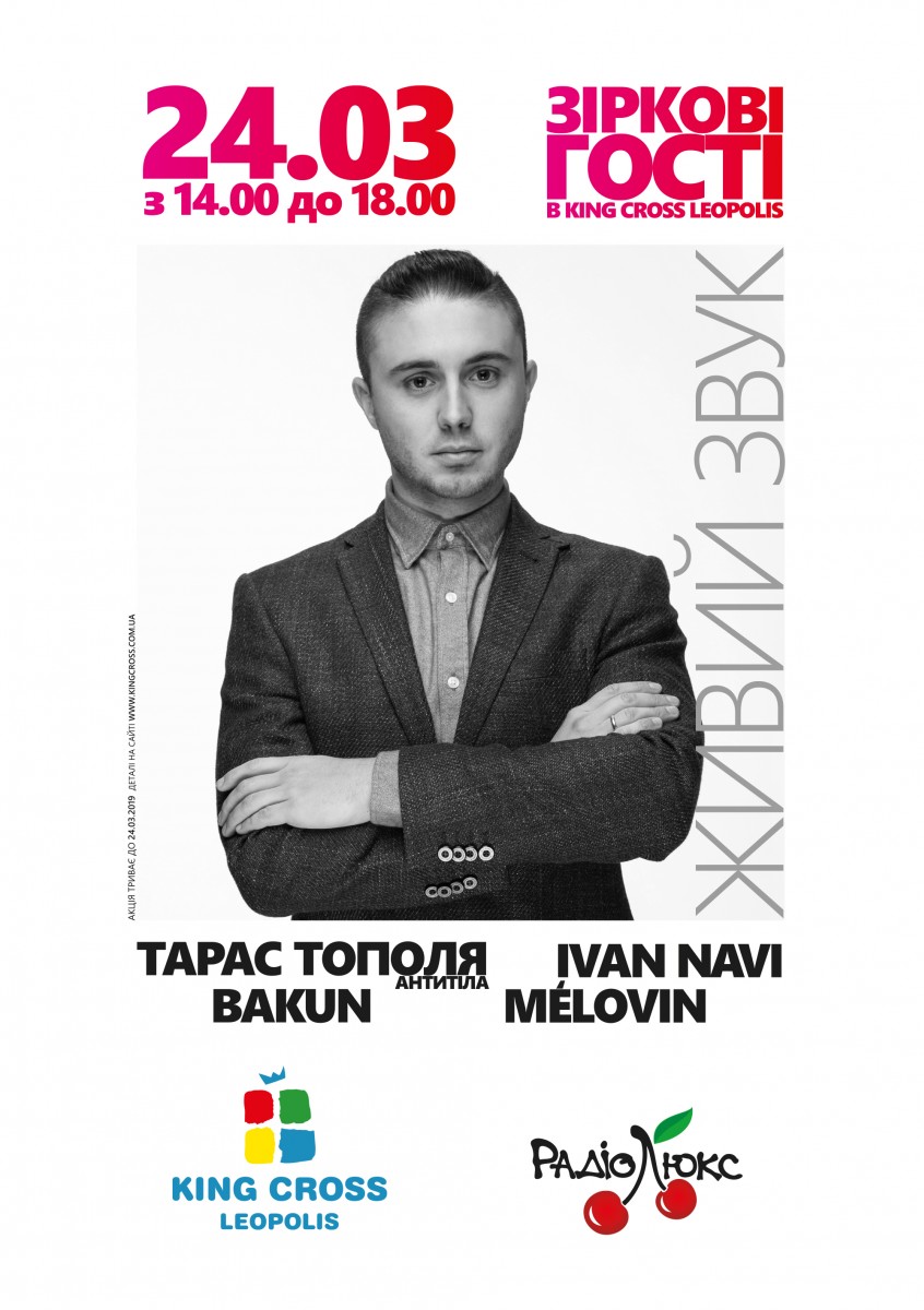 24 березня запрошуємо святкувати День народження ТРЦ King Cross Leopolis з українськими зірками: Тарасом Тополею, Melovin, Ivan Navi та Bakun!