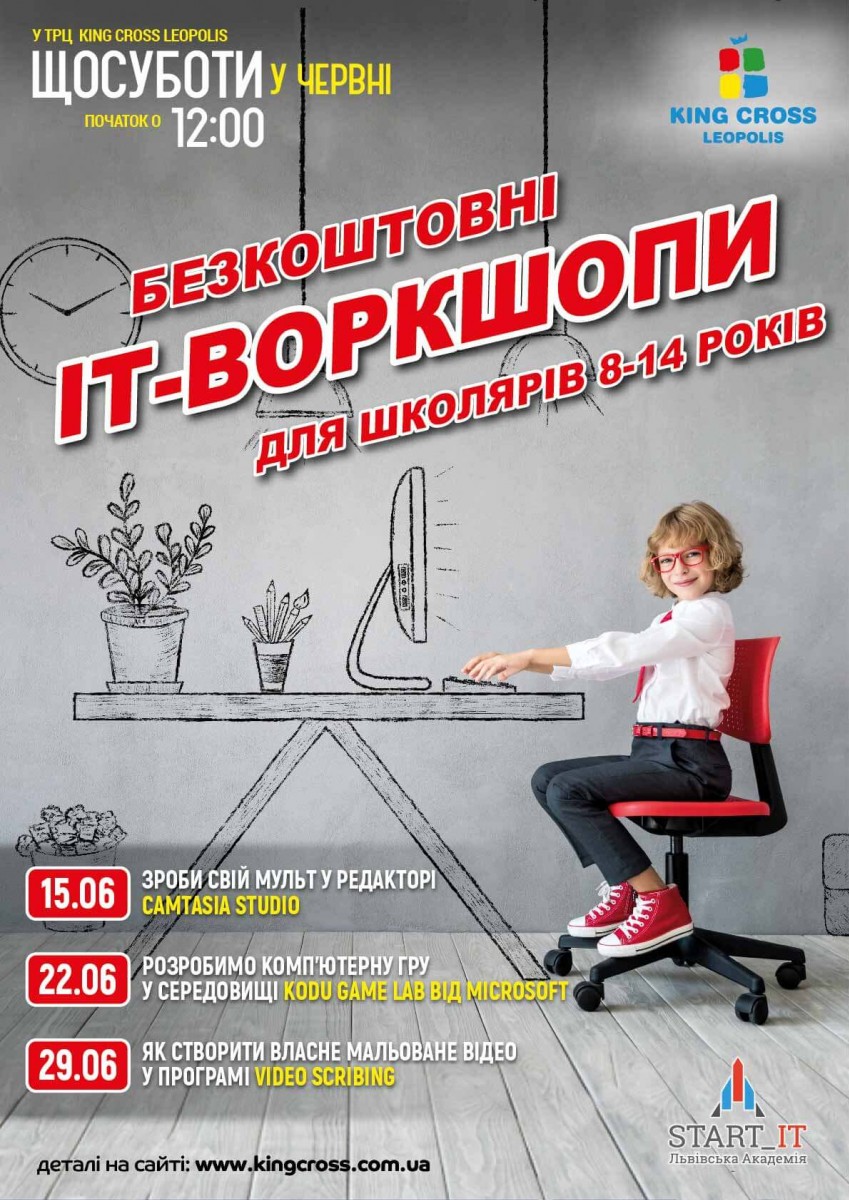 Запрошуємо на безкоштовні ІТ-воркшопи для школярів 8-14 років! Заняться відбуватимуться щосуботи у червні, починаючи з 15.06.