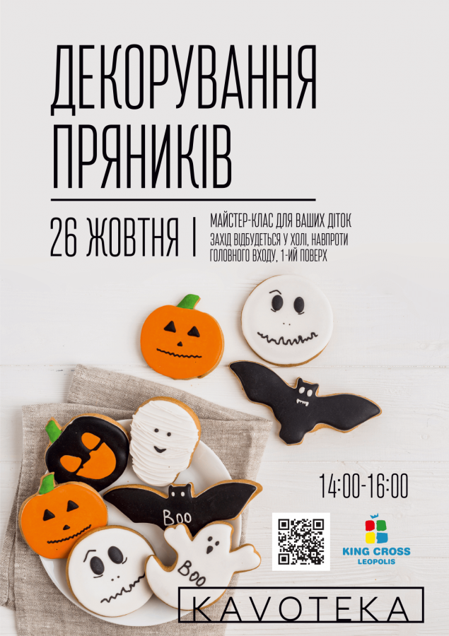 KAVOTEKA запрошує на безкоштовний майстер-клас з декорування пряників в ТРЦ King Cross Leopolis.Приходьте з дітьми 26 жовтня з 14:00 до 16:00 і розмалюйте пряник на свій смак
