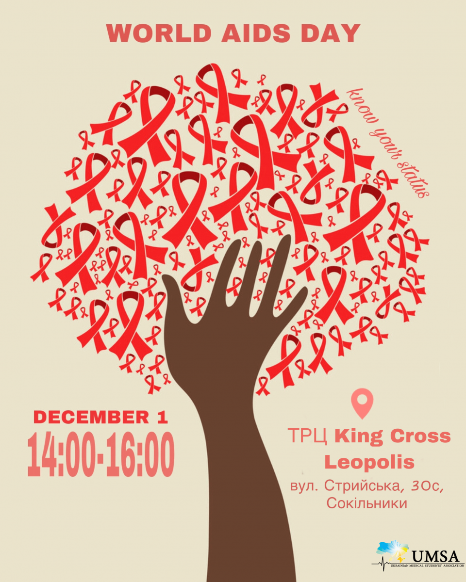 1 грудня - Всесвітній день боротьби зі СНІДом. Ні для кого не секрет, що масштаби поширення вірусу імунодефіциту людини набули глобального характеру. За оцінними даними, на початку 2018р. в країні проживало 244 000 ВІЛ-позитивних людей. Кожен сотий громадянин України у віці від 15 до 49 років інфікований ВІЛ, що є одним із найвищих показників серед країн регіону.