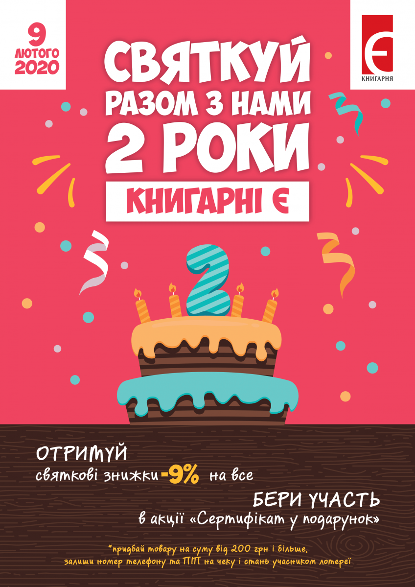 9 лютого Книгарня "Є", що у ТРЦ King Cross Leopolis, святкуватиме День народження! Уже 2 роки вона знайомить дорослих та дітей зі світом книг: українськими та іноземними виданнями, художньою літературою та науковою, дитячими книгами та коміксами!