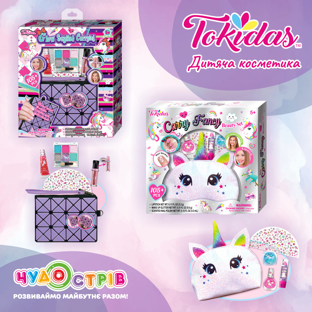 Крутезна дитяча косметика Tokidas для маленьких модниць у Чудо Острів. Кожна дівчинка знайде ідеальний для себе набір косметики Tokidas!Лаки для нігтів, тіні, помади, блиски, яскраві наліпки та дуже гарні косметички