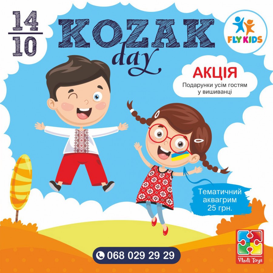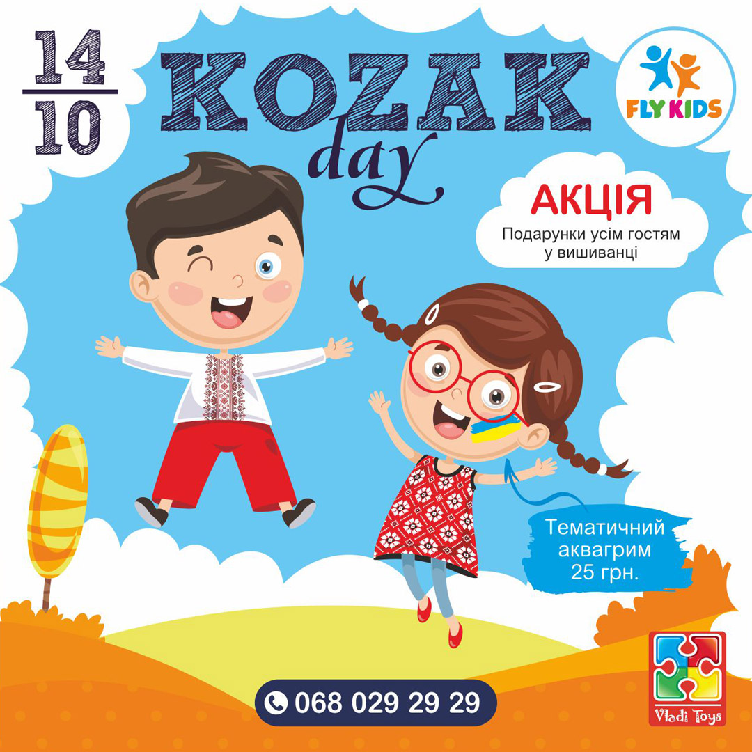 Мужні та завзяті козаки силу мають, і про розваги не забувають! Завітайте до Fly Kids 14 жовтня та святкуйте разом з нами День захисника України! На всіх гостей чекають:
