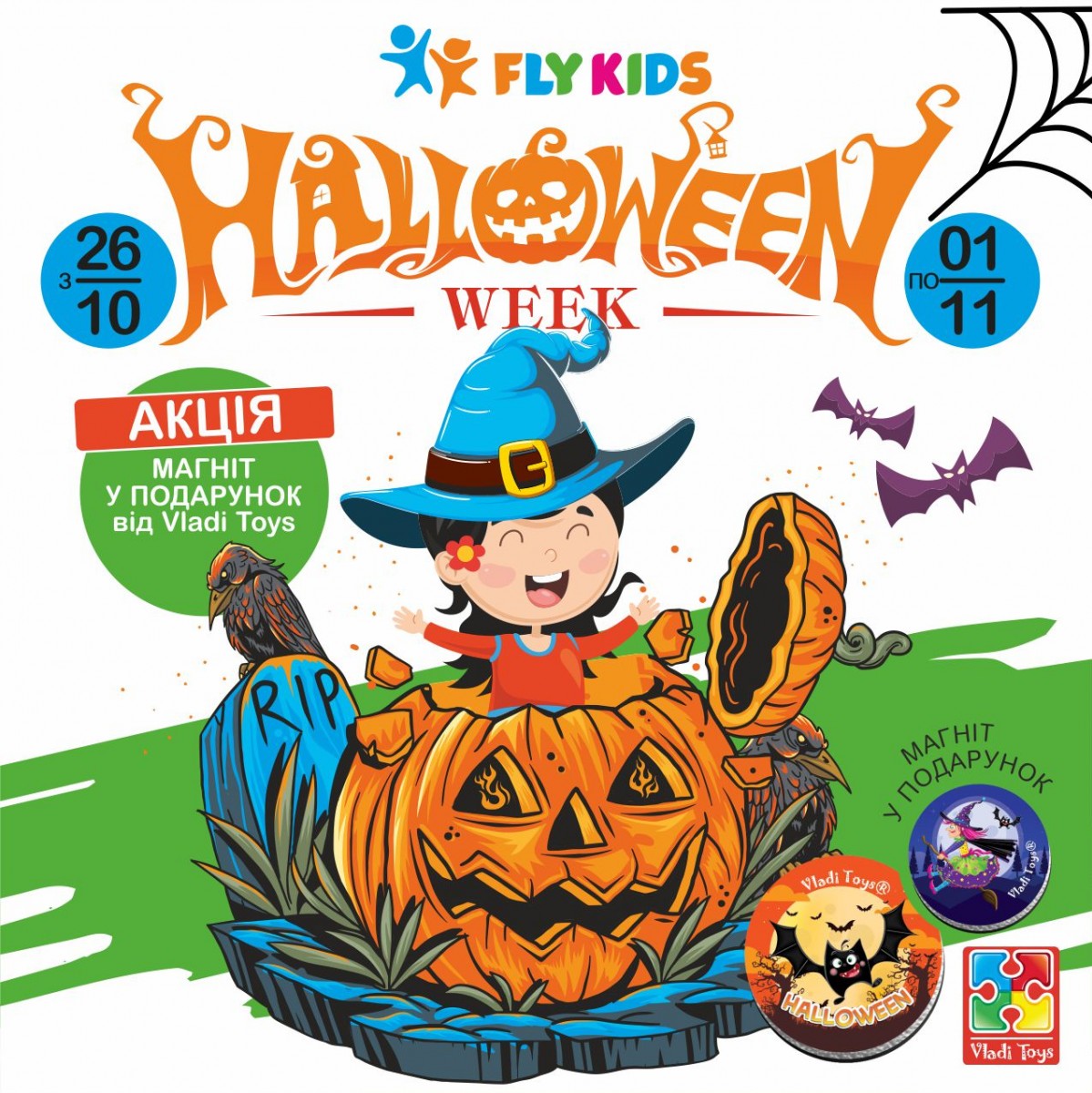 Зустрічайте страшенні розваги! З 26.10 по 01.11 завітайте на Halloween Weekend до Fly Kids. На вас чекають магічні пророцтва, моторошні майстер-класи та жахітливі веселощі! Купуючи дитячий квиток з понеділка до п'ятниці, отримайте магніт від ТМ Vladi Toys у подарунок!