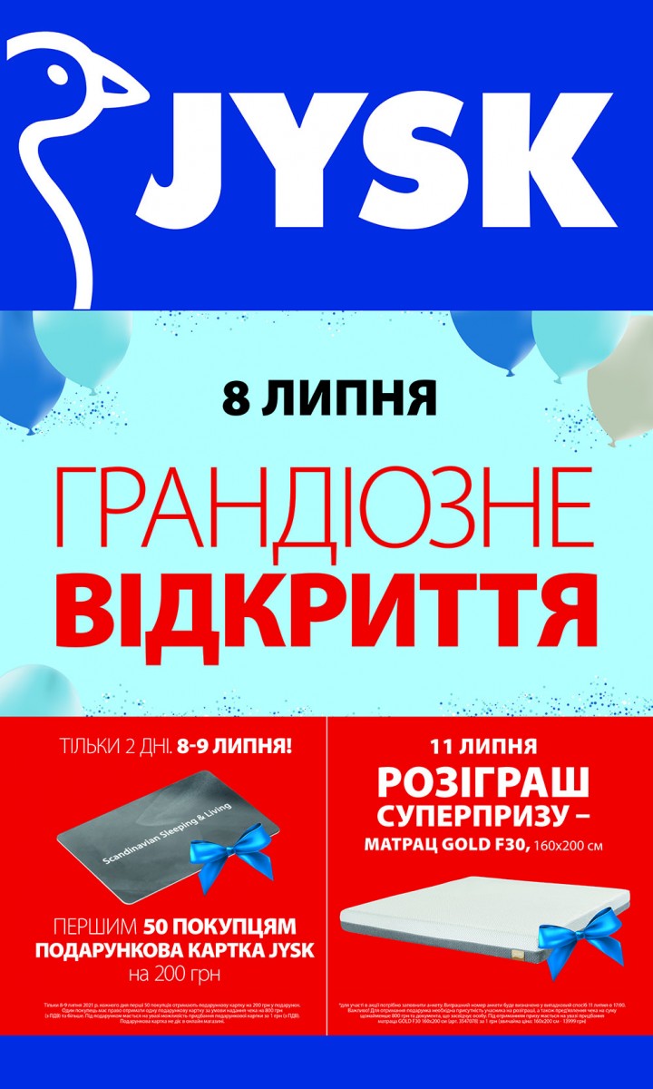 Грандіозне відкриття магазину Jysk у ТРЦ King Cross Leopolis! Уже з 8 липня вибирайте найкращі товари для дому та отримуйте подарунки.