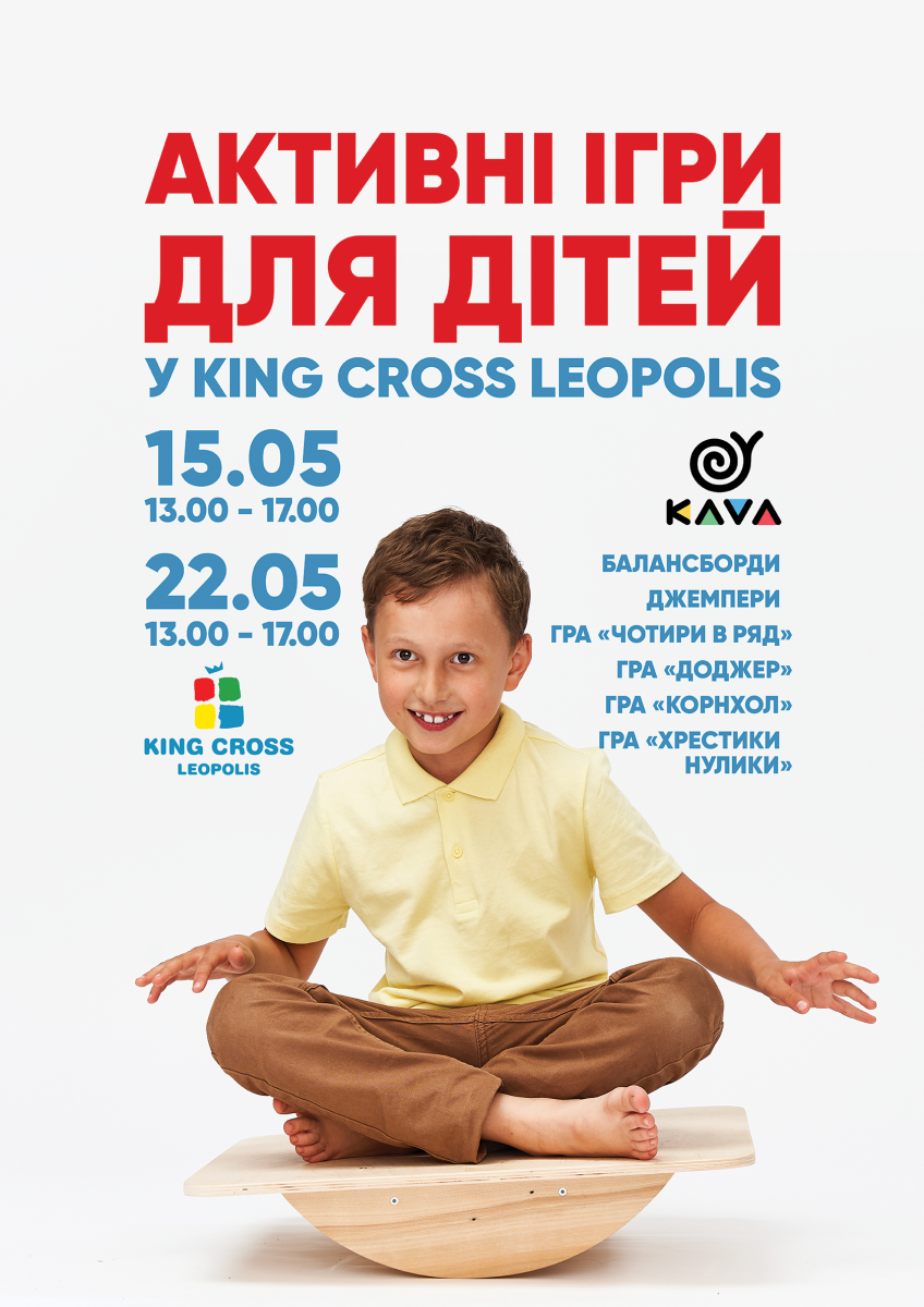 Знаємо, що зараз діти особливо потребують витратити накопичену енергію - у King Cross Leopolis це можна зробити весело і з користю. 15 та 22 травня запрошуємо найменших відвідувачів долучитися до активних ігор та спілкування з однолітками!