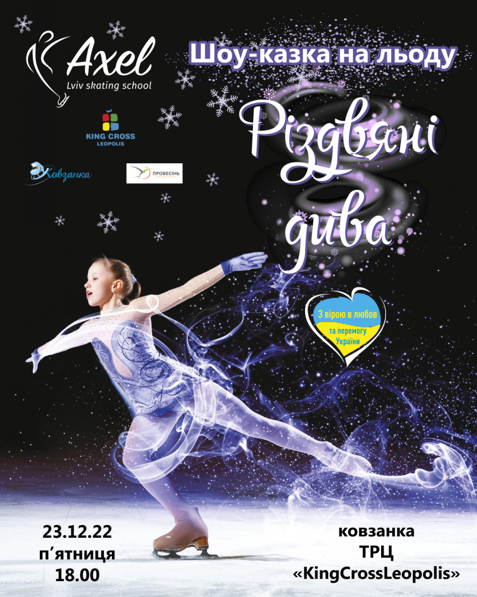 Зимові вистави на нашій ковзанці не завершуються! Уже завтра, 23 грудня, запрошуємо на "Різдвяні дива" від AXEL - школи фігурного катання!