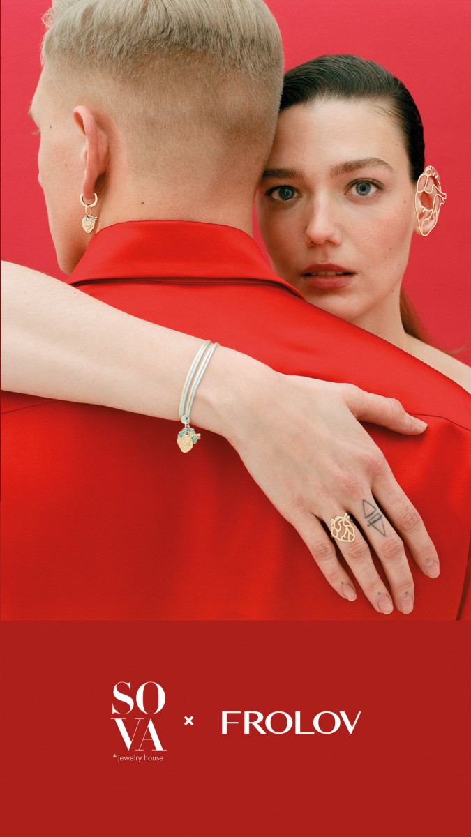 “Натхненням для нашої нової колаборації з SOVA стала благодійна ініціатива FROLOVHEART. Кожне срібне серце лімітовано і повністю покривається емаллю вручну. Флагманом цієї колаборації є каф, натхненний прикрасою з нашої кутюрної колекції, виконаний з білого та жовтого золота. Ми щасливі, що набуваючи нових фізичних форм, дякуючи SOVA, ми продовжуємо допомагати українцям і робити все можливе для нашої Перемоги.