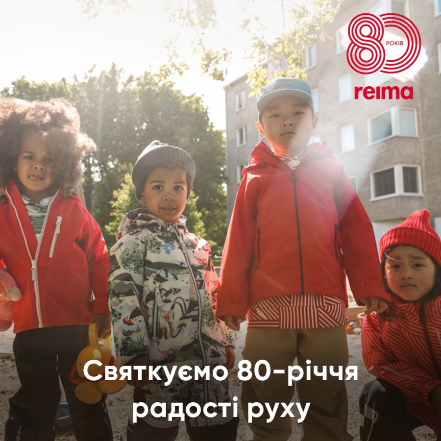 Вау, ви можете в це повірити? Нам уже 80 років! Багато чого змінилося, але дещо лишається незмінним: Reima прагне дати дітям можливість вільно грати та жити на повну. А завдяки функціональним та екологічним матеріалам одягу та взуття діти будуть готові до будь-якої погоди.