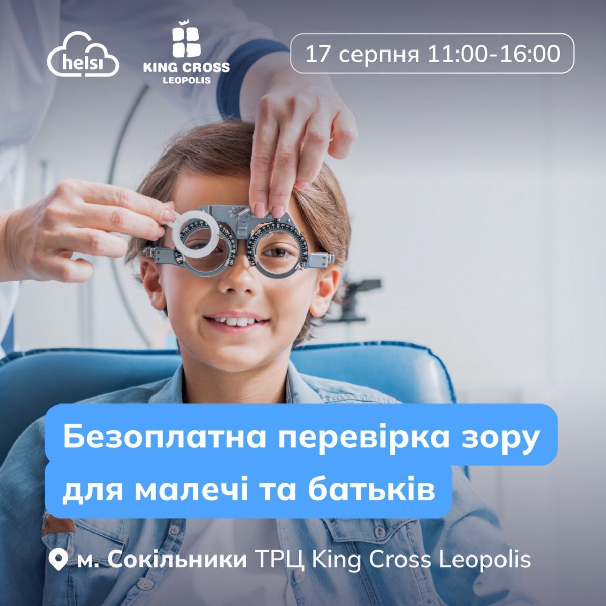 Тож пропонуємо 17 серпня виділити трохи часу на турботу про себе та пройти перевірку зору від спеціалістів Helsi! З 11:00 до 16:00 у цей день охочі малюки та батьків можуть безоплатно впевнитись, що бачать світ чітким на всі 100% :)