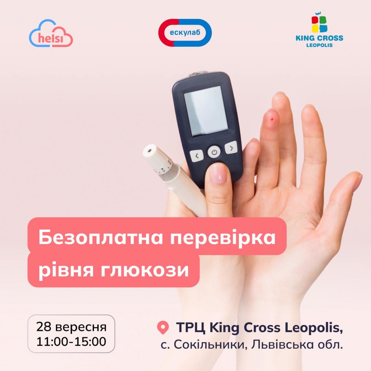 Разом із нашими партнерами Ескулаб запрошуємо вас на безкоштовний експрес-тест рівня цукру в крові.